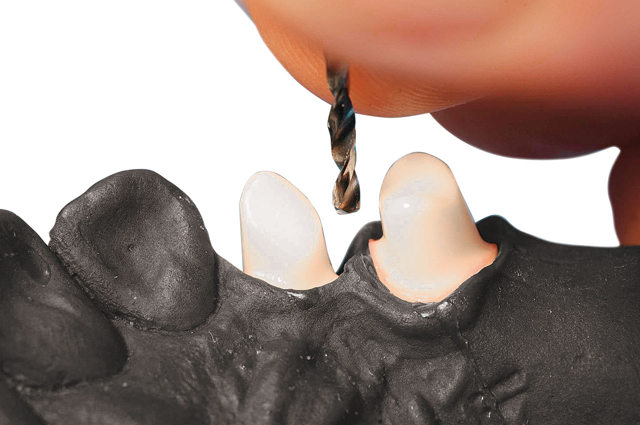 Para la integración ideal del attache RS en la forma del diente, es aconsejable modelar las coronas por completo con cera de fresado.